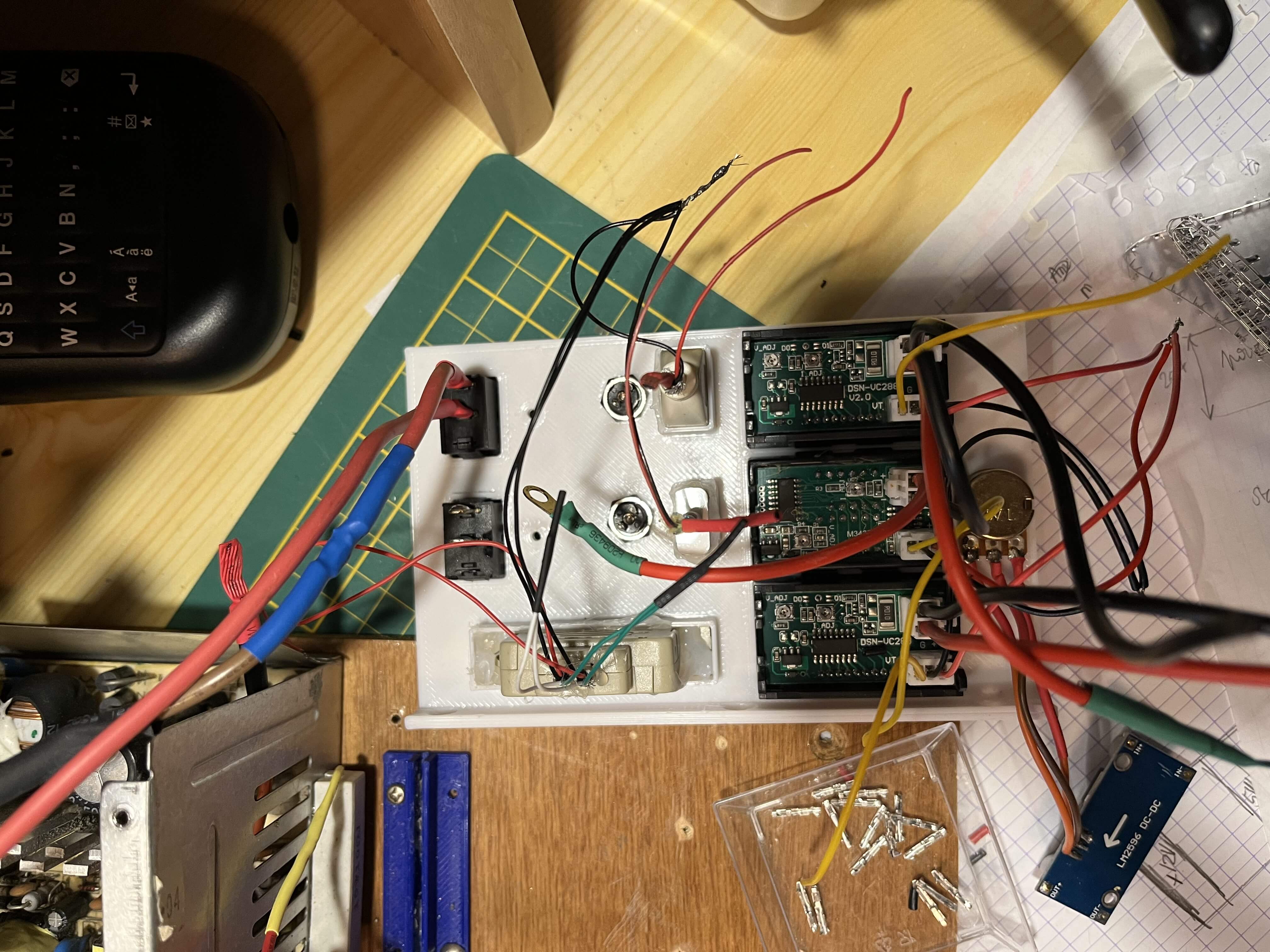 Pour les fils jaune, rouge, orange et noir en trop, j’ai torsadé les extrémités entre elles et j’ai mis de la gaine thermorétractable.