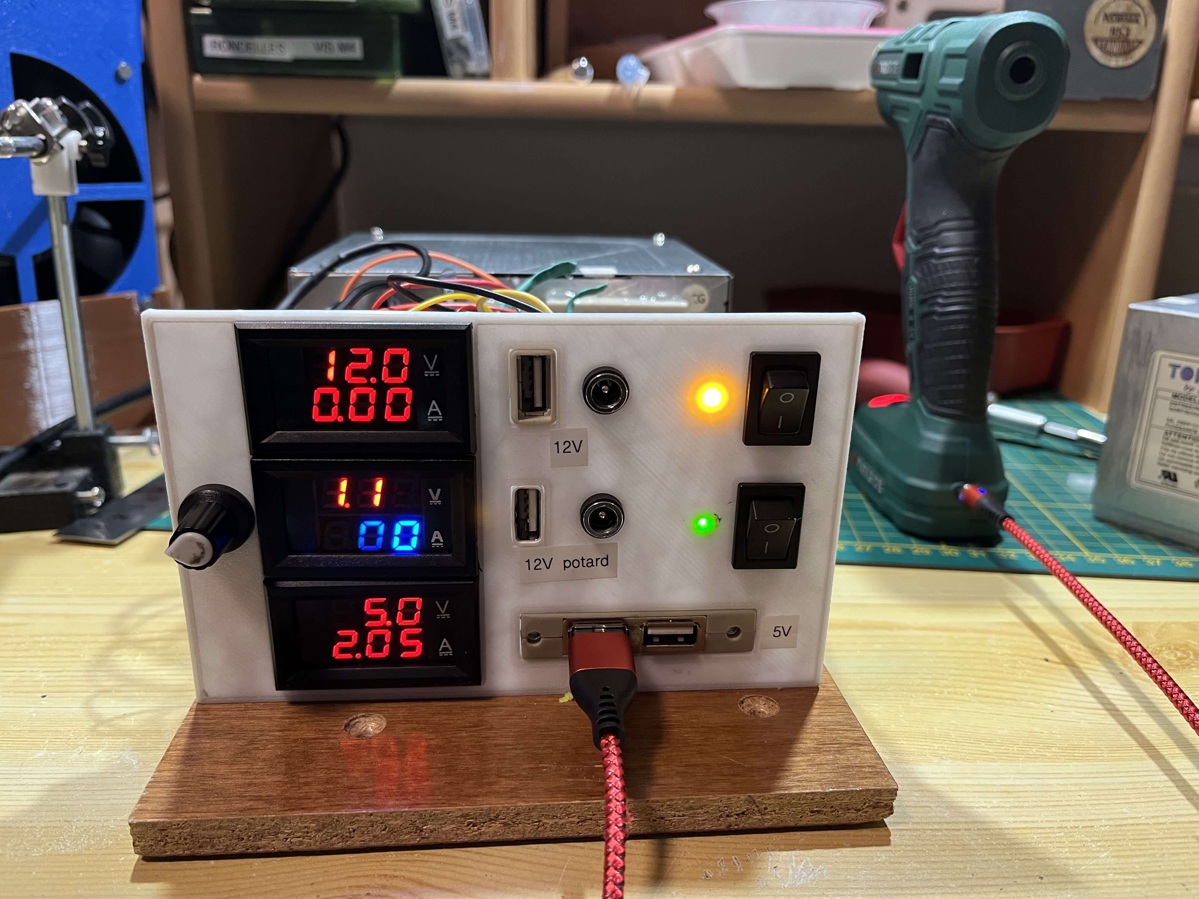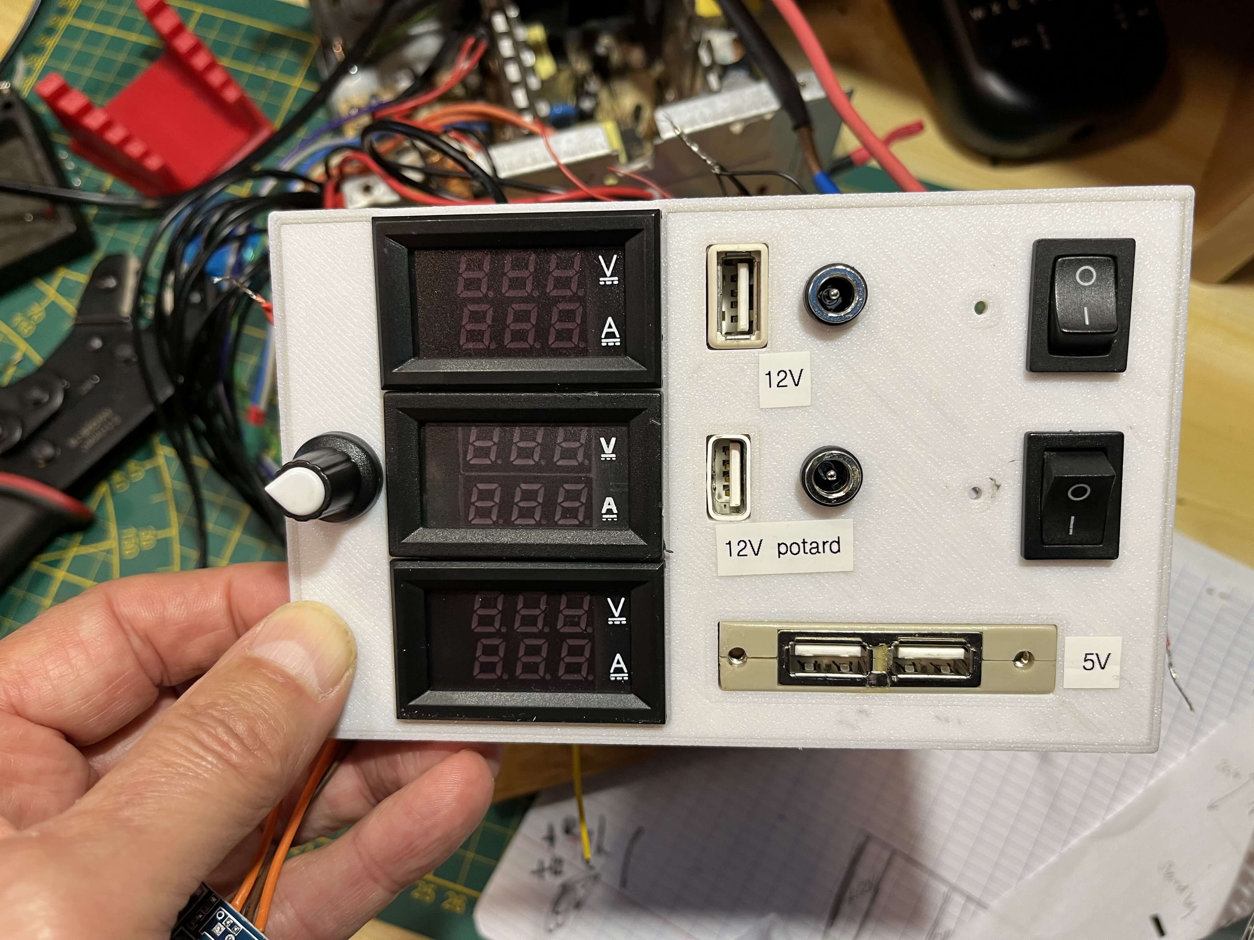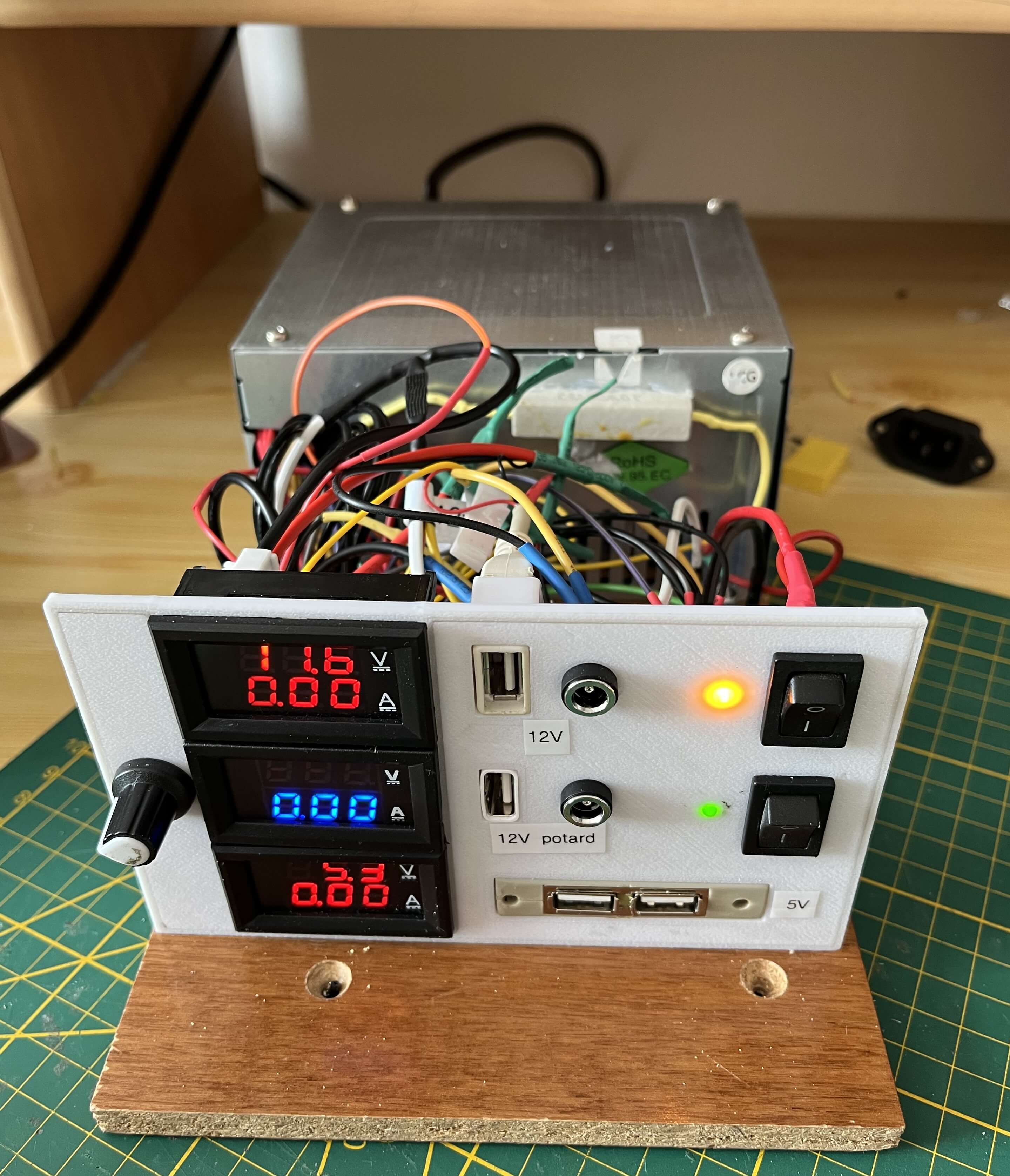 Alimentation stabilisée à partir d'une alimentation PC. Elle fournit du 5V, 12v et variable de 1 à 12 v.