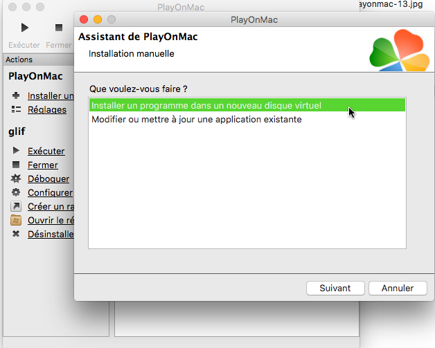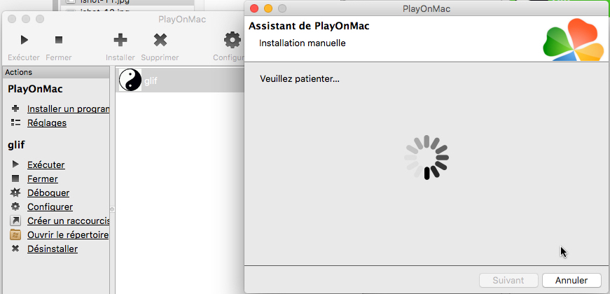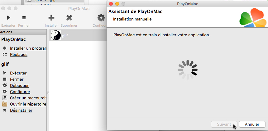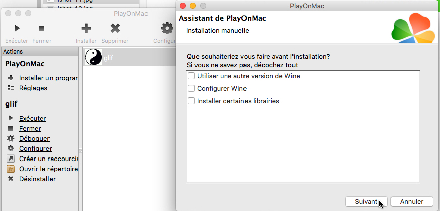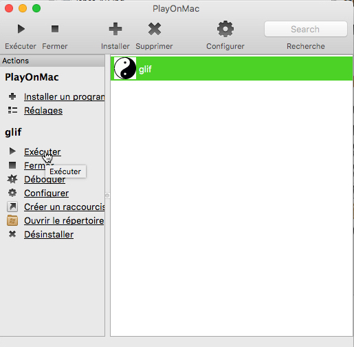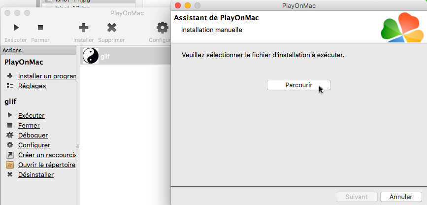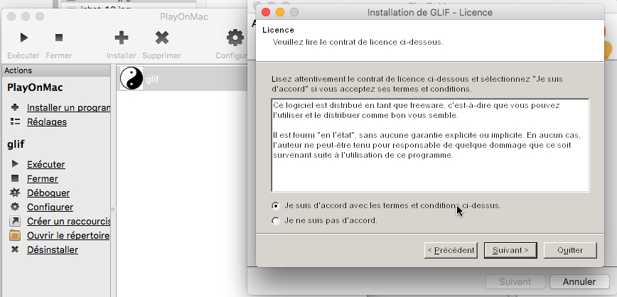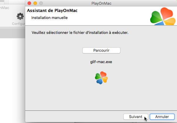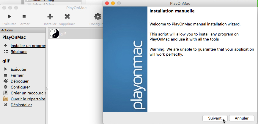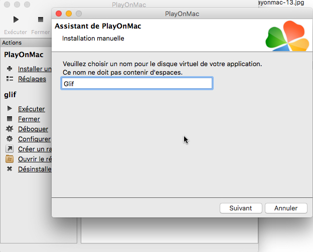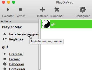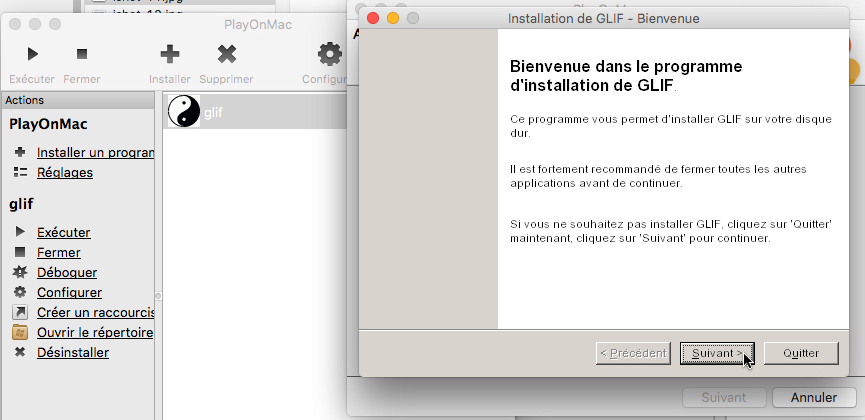 Installation de Glif sur un ordinateur Mac avec l'interface "PlayOnMac".