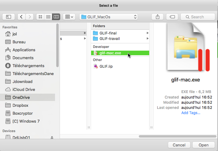 Sélectionner le fichier glif-mac.exe à installer