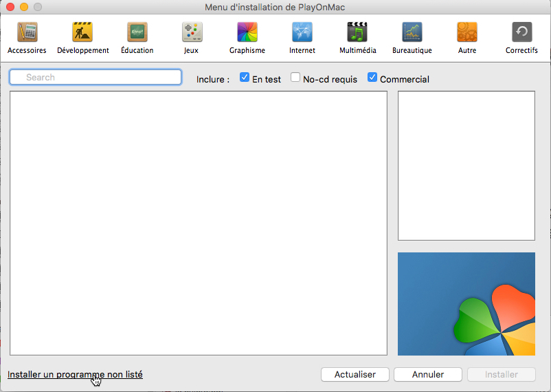 Après l'installation de PlayOnMac, lancez le logiciel
