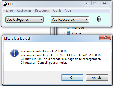 - Le logiciel vous indique la version que vous utilisez et la version disponible.