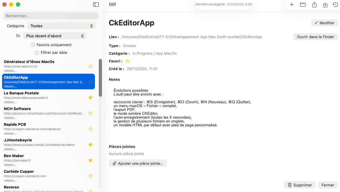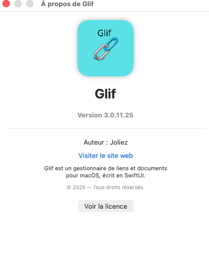 Glif est un utilitaire macOS conçu pour vous aider à organiser facilement vos ressources essentielles :